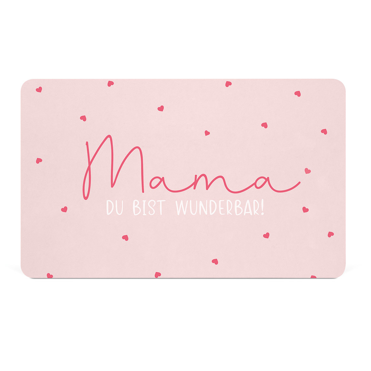 Mama du bist wunderbar. Ein rosafarbener Hintergrund mit pinker Mama Aufschrift und pinken Herzen.