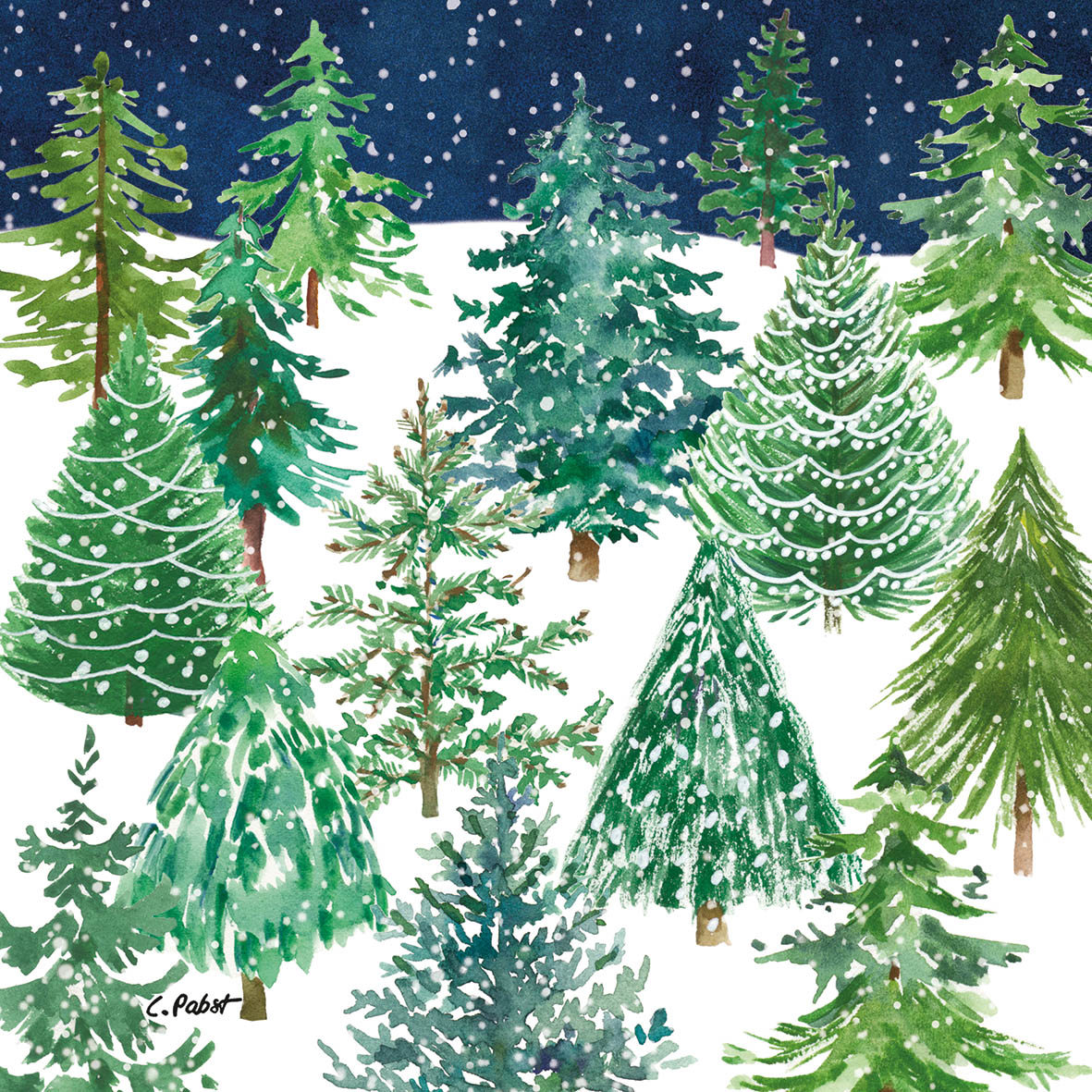 20 bedruckte Papierservietten im Format 25 x 25 cm bzw. 12,5 x 12,5 cm (Cocktailformat), 3-lagig, Material: 100% Tissue, lichtechte Farben, chlorfrei gebleicht, FSC-zertifiziert